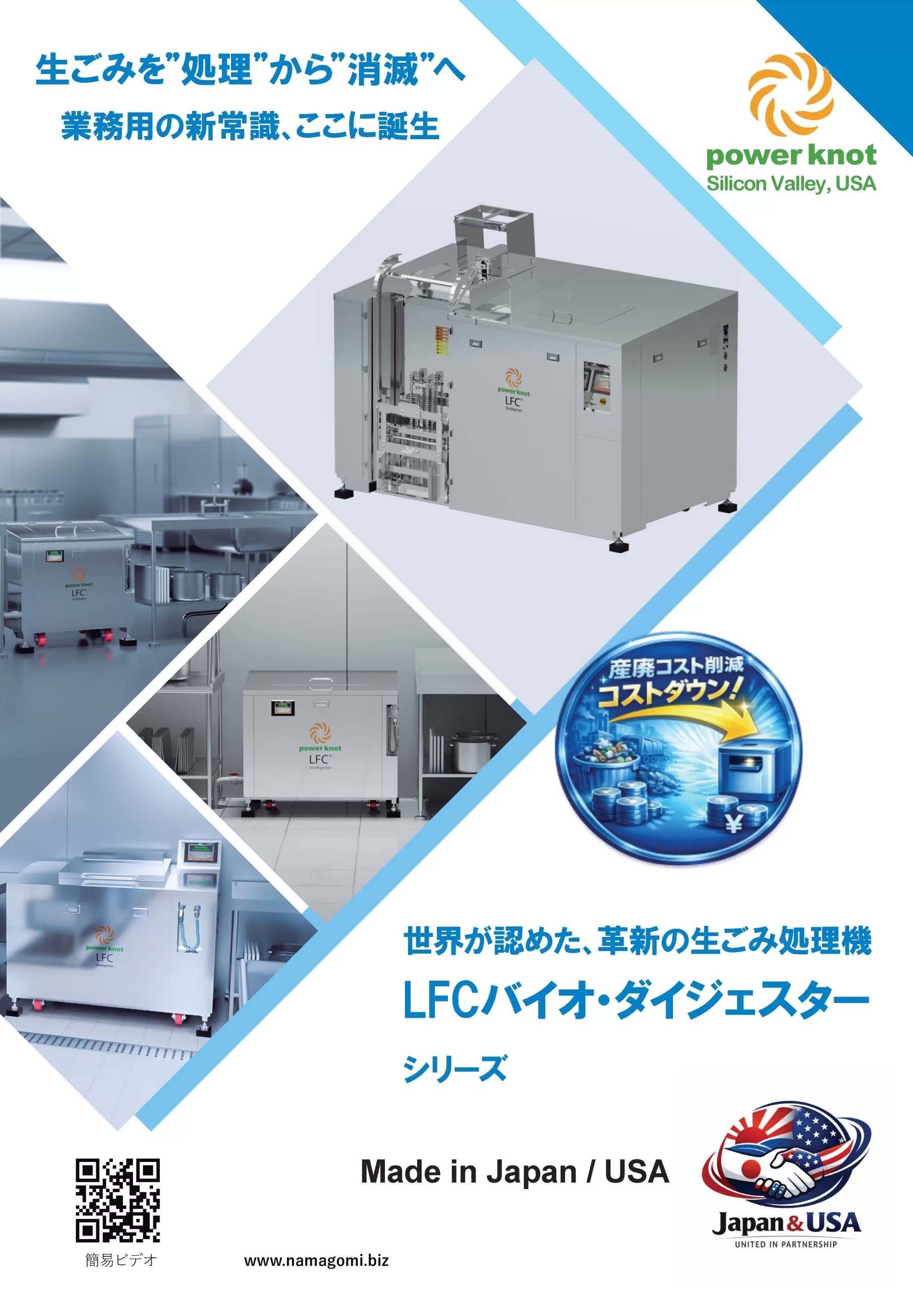 中部パック 2026 <名古屋>に出展します。 • 日程:2026年4月22日(水)~25日(土) • 場所:… 続きを読む: 中部パック 2026 <名古屋>に出展します。 - 米国シリコンバレーのpower-knot社と連携 消滅型業務用生ごみ処理機「LFCシリーズ」の日本国内生産を開始